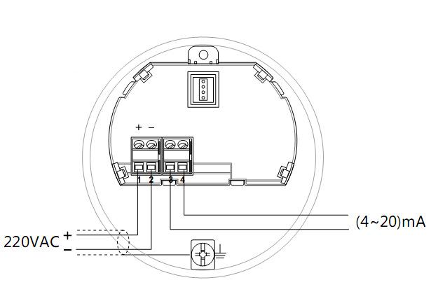 裝置完成后,將液位變送器的外殼蓋擰下,取下顯示模塊后將電纜穿過纜塞,運(yùn)用屏蔽電纜,依照接線圖接線,在變送器測(cè)儀將電纜屏蔽層接地。接完線后擰緊電纜塞,擰上外殼,接線完成。
